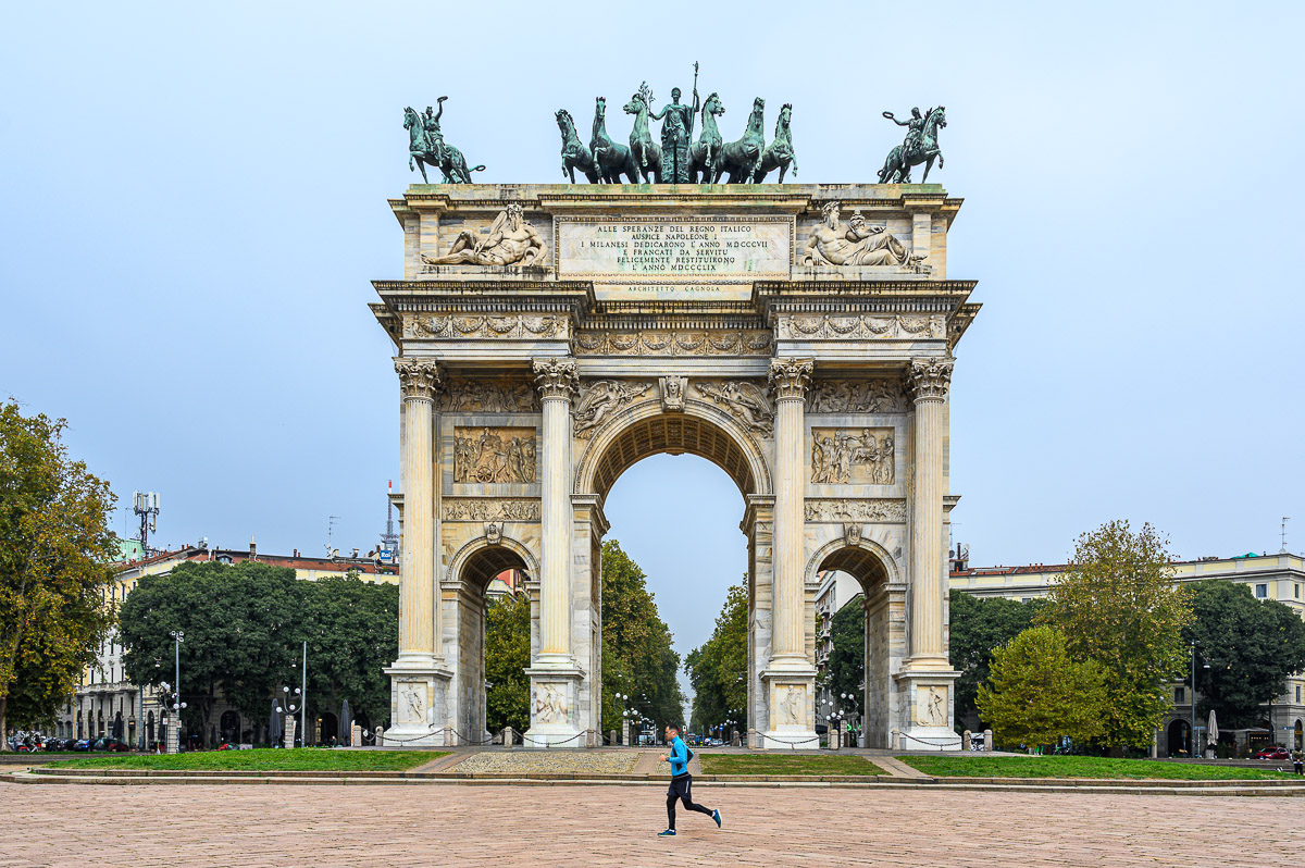 Doch bald kommen wir zum Eingang des Parco Sempione mit dem grossen Triumphbogen, dem Arco della Pace.