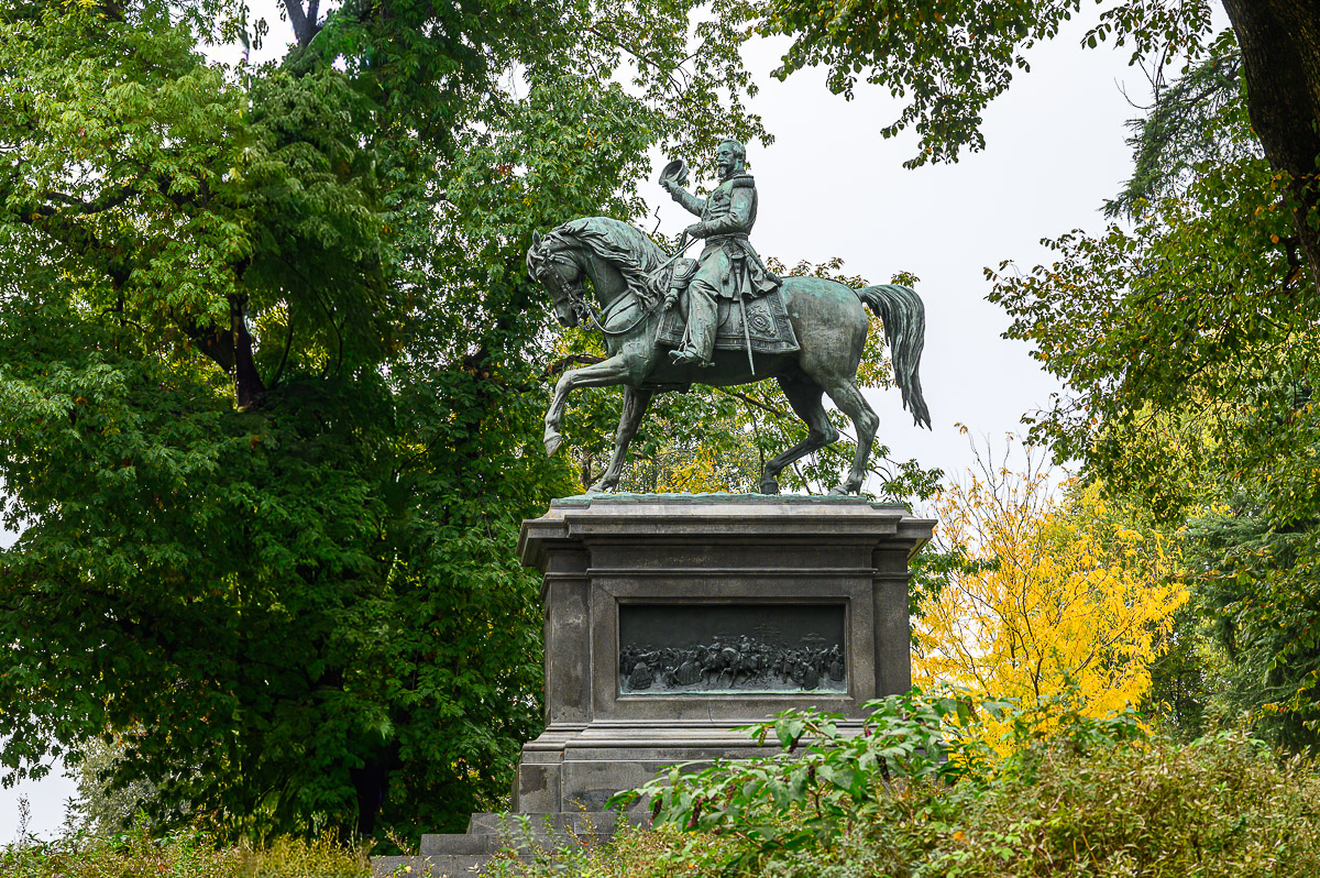 Der Triumphbogen steht am Eingang des Parco Sempione (Simplonpark), welcher zurzeit in den schönsten Herbstfarben leuchtet. Wir machen einen gemütlichen Spaziergang durch den ganzen Park Richtung Castello Sforzesco. Unterwegs begegnen wir auch noch Kaiser Louis Napoleon III., welcher hier ein Denkmal erhalten hat für seine Taten im italienischen Unabhängigkeitskrieg 1859 und für seine Unterstützung des italienischen Königs Emanuele II.