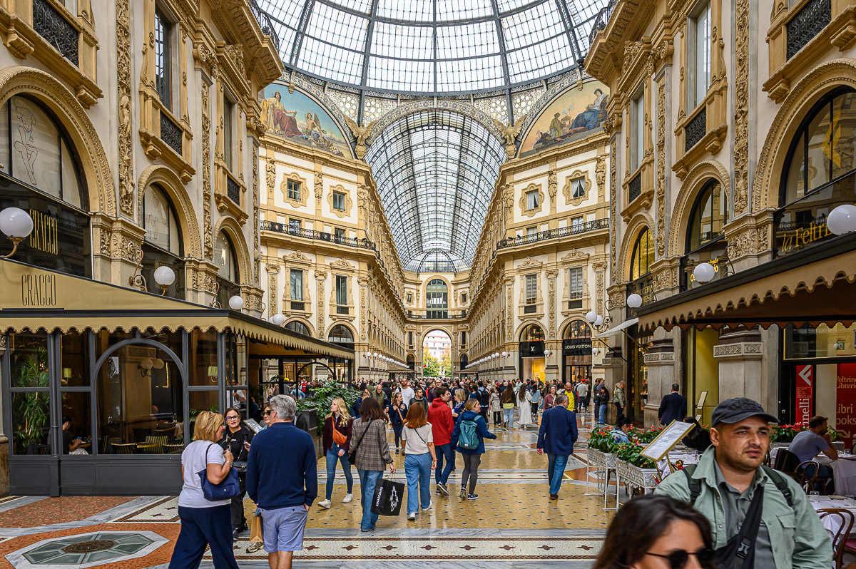 Zuerst schlendere ich durch die imposanten und beeindruckenden Hallen der Galleria Vittorio Emanuele II. mit den unzähligen Shops und Restaurants aus dem Luxussegment. Die Galleria Vittorio Emanuele II ist eine nach dem König Italiens benannte Einkaufsgalerie aus dem 19. Jahrhundert. Die Eröffnung durch den König fand am 15. September 1867 statt.