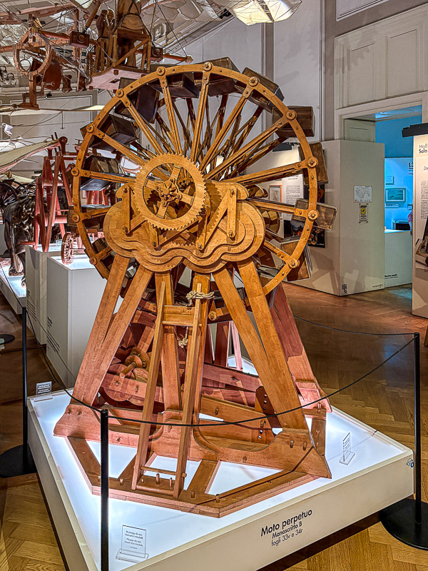 Anschliessend besichtige ich – nachdem ich den Eingang gefunden habe – das Museum mit vielen Holzmodellen und Skizzen von Leonardos Erfindungen. Sehr interessante und liebevoll gepflegte Ausstellung. Ich durfte nur mit dem Smartphone, aber nicht mit einer richtigen Kamera fotografieren.
