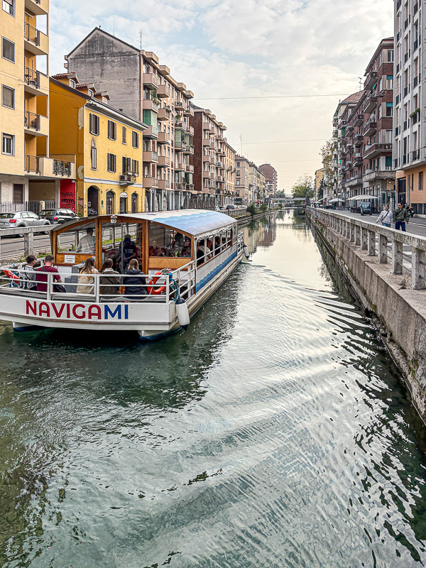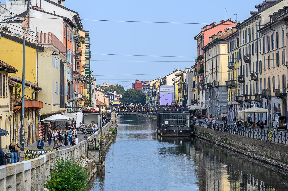 Nach der Mittagspause sind wir alle wieder vereint und entern eines der historischen Trams in Richtung Stadtteil Navigli. Navigli heissen die bis ins 20. Jahrhundert typischen Kanäle in und um Mailand, deren Nutzung als Verkehrswege schon in der Antike zum Wohlstand des alten Mediolanum beitrug.
